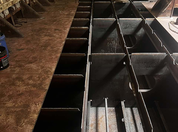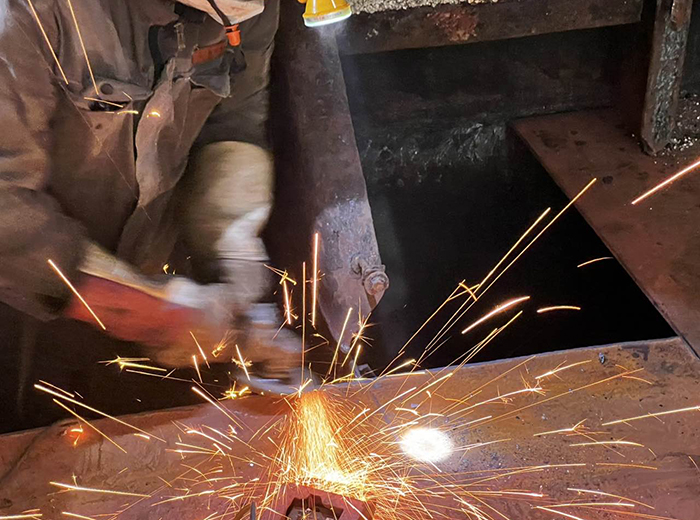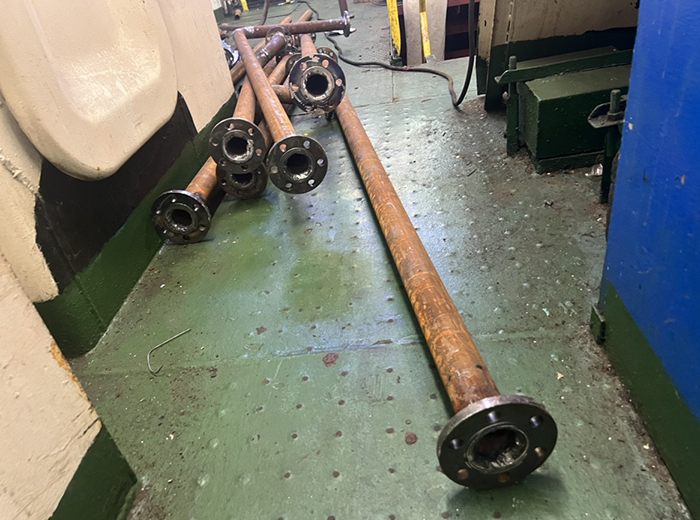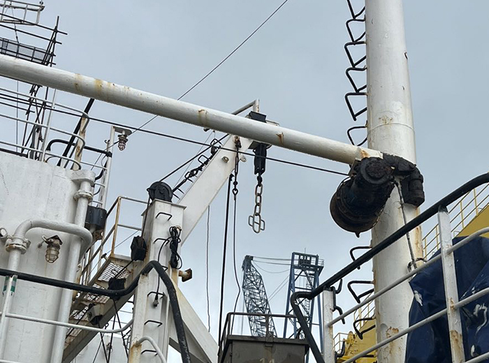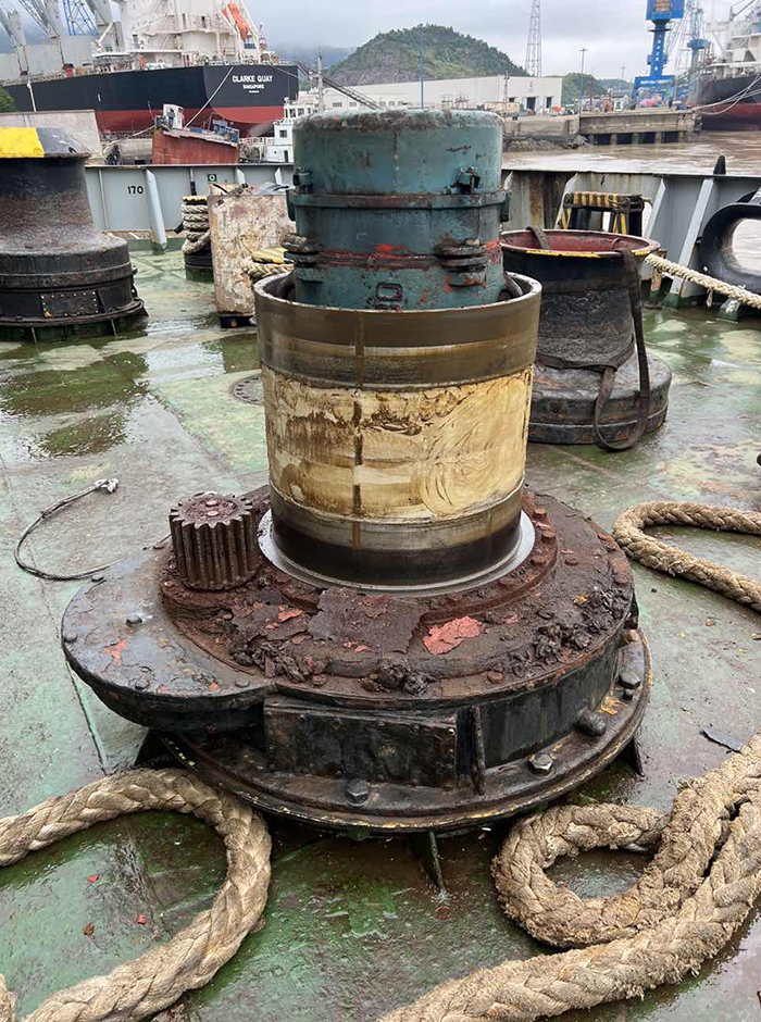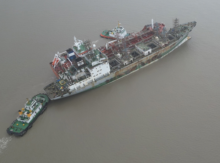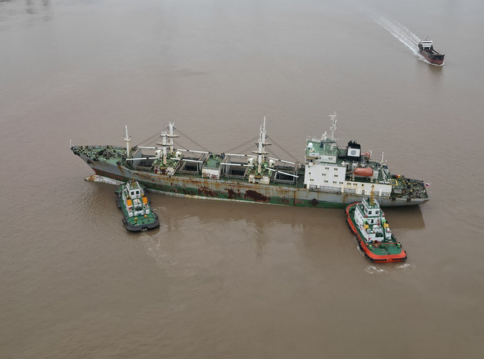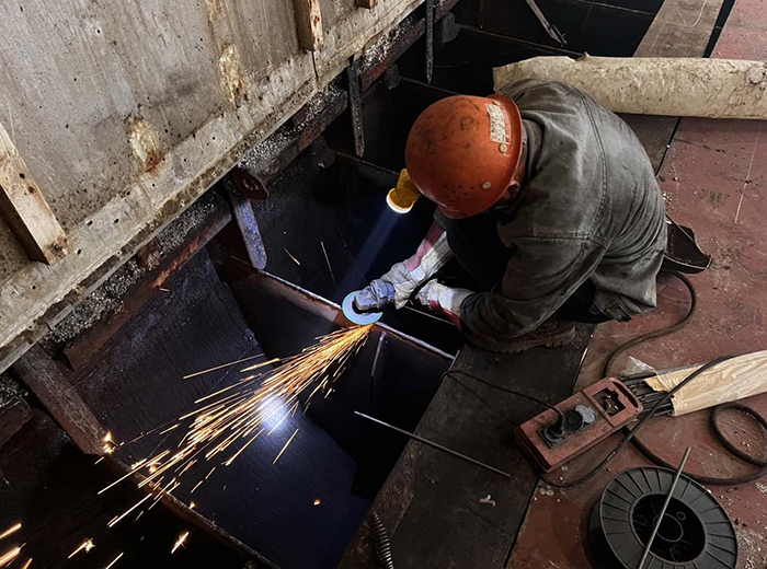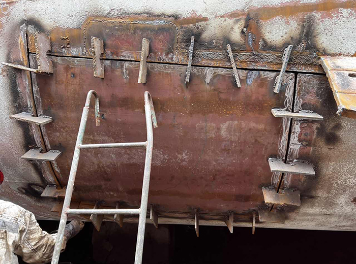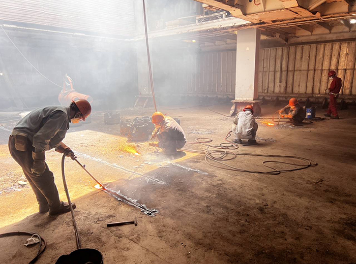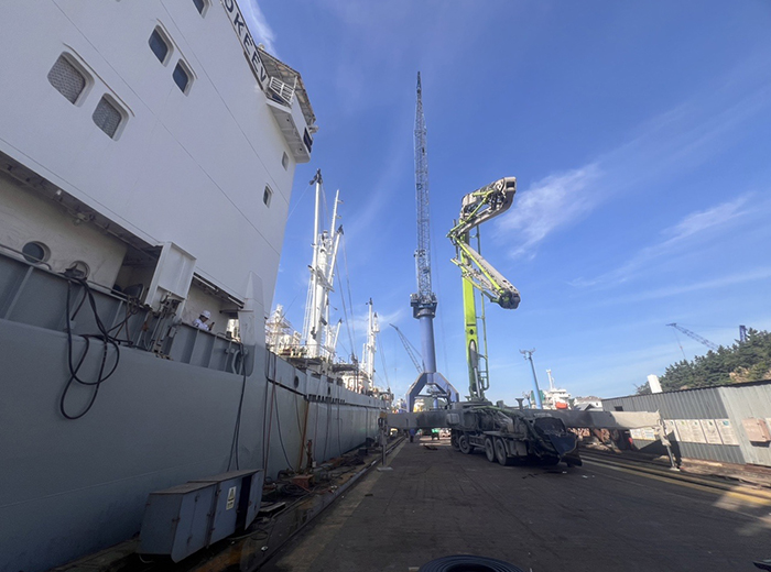 莫科轮于2025年5月28日进册子船厂进行维修,本次修理为中间检验。主要工程有:三、四号货舱换新内底板;二、三号货舱二甲舱盖全部换新(液压缸修理);四套八块主舱盖下地修理;八根吊杆下地修理,尾部生活小吊吊杆下地;锚机下地,齿轮探伤,换新铜套;生活区部分水密门换新;舷梯下地修理;救生艇下地;机舱部分甲板换新;部分起货绞车及电机,千斤索绞车电机,尾部生活小吊绞车下地修理;左舷尾缆机电机修理;机舱部分油柜清洁,蒸汽加热管试压;常规坞修海底舷外阀,管路阀,锅炉阀,压载排水系统气动阀修理;2号停泊海水泵连电机,2号主海水泵,消防泵修理;主机空冷器,主机凸轮轴滑油冷却器修理;23,24号油柜加装连通管路;空压机一台,部分空气瓶瓶头阀修理;生活污水处理系统阀,管路等修理,2个筒体换新,1个齿轮箱壳体换新;坞修换新部分外板和舭龙骨,桨舵组常规测量,探伤;压载舱清洁,装锌块;生活区及全船零碎换板;全船涂装。